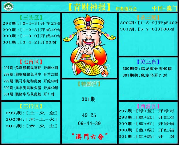301期: 澳门六合彩彩圖信封【青财神报】每期自动更新